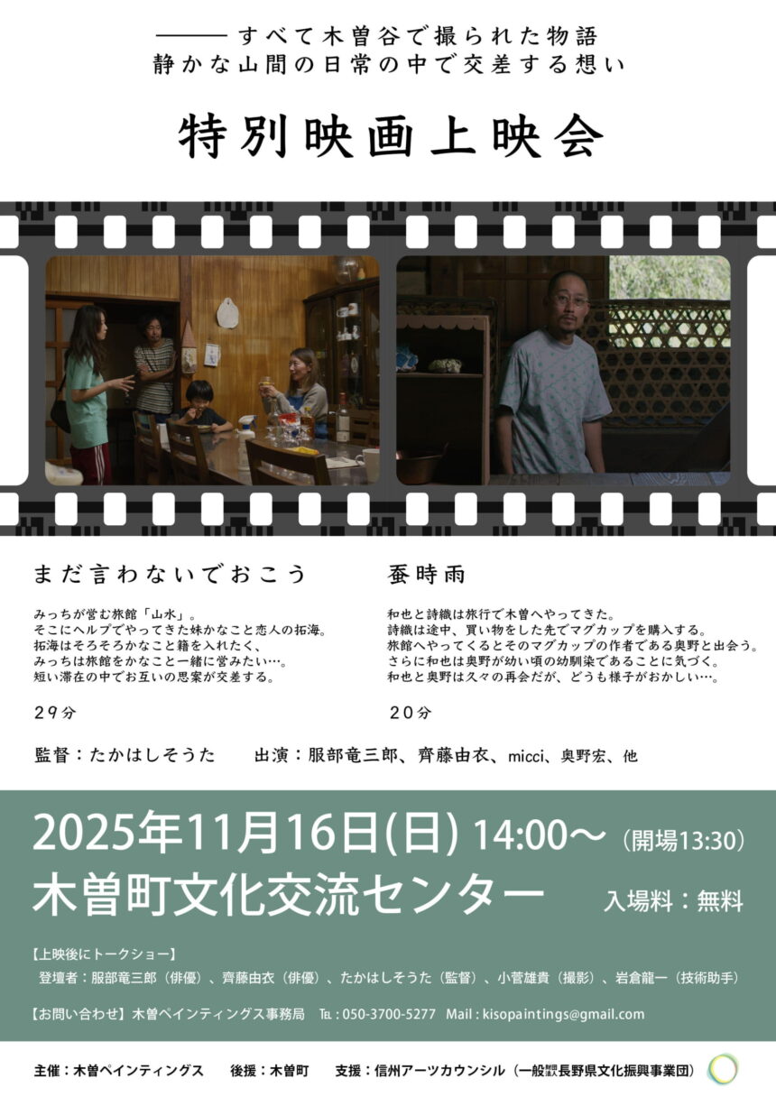滞在後半の約10日ほどで俳優やスタッフも木曽入りし、木曽の人々も参加して撮影された映画です。