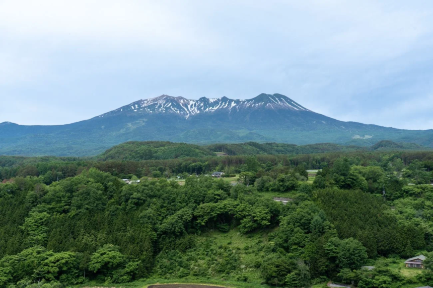 取材した6月初旬には、まだ雪がところどころ残っていて、立体感を感じさせる佇まいでした。眼下には柳又集落や田園も広がります。