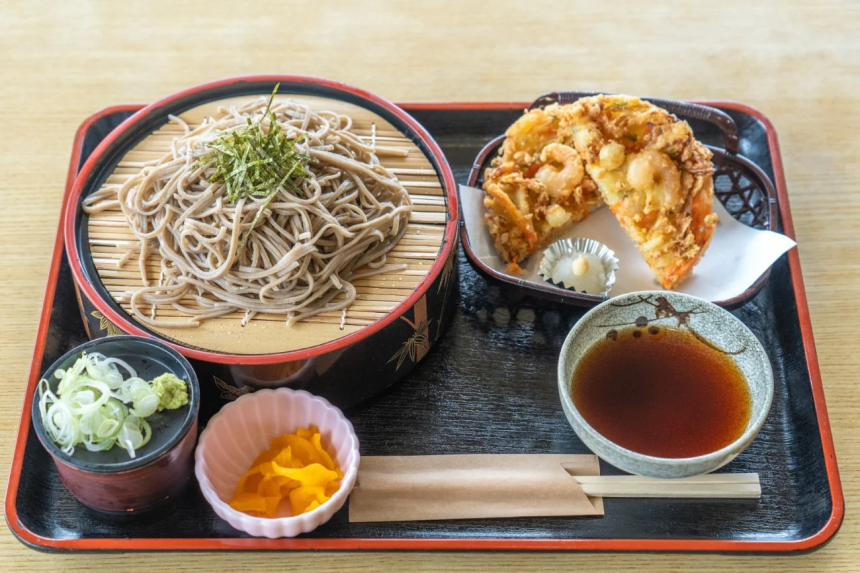 開田早生は、大変風味が良いと評判です。香ばしくて、食感もしっかりとしたコシのある蕎麦を、ダシの効いたつゆに絡めてすすります。
