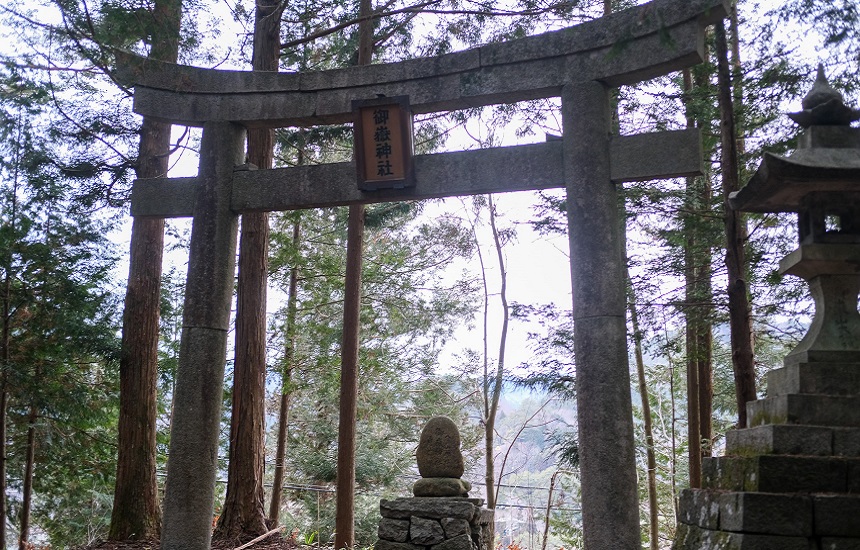 北は長峰峠、西は三浦山、東は鳥居峠と南はここ神戸の4ヶ所で、御嶽山四方遥拝所というそう。鳥居は御嶽山の方角を向いていますが、残念ながら現在は木々により御嶽山は見えませんでした。