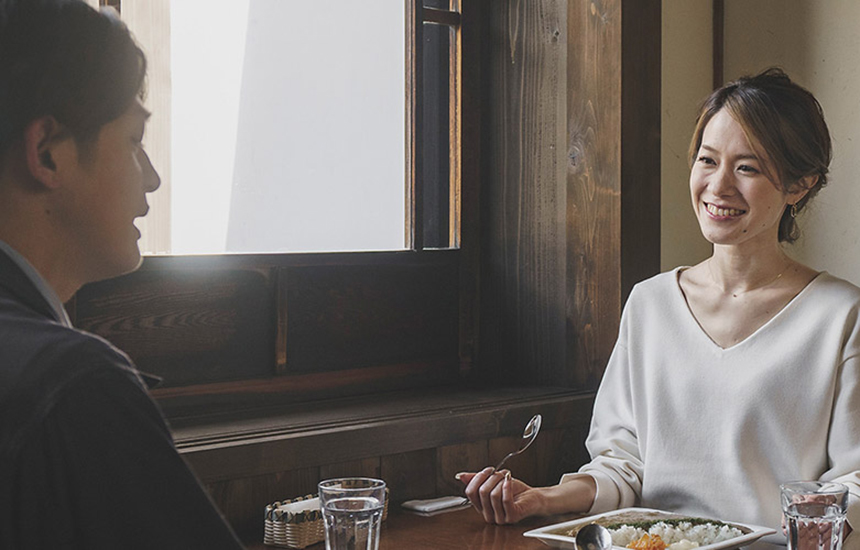 立派な支柱や一枚板のカウンターが存在感を放つ「cafe深山(みやま)」。木の温もりが感じられる建物は、代々、材木屋を営んできたオーナーがこだわってつくりました。看板メニューである「100年前のライスカレー」は、100年前につくられていたカレーのレシピを参考にして、五日間かけて野菜をじっくり煮込んだ本格カレー。食後のコーヒーは、カップを温めじっくり抽出したやさしい味。奈良井の特産品「ひのきの曲物」のおぼんに、季節の花を添えてくれるおもてなしに心も温まります。